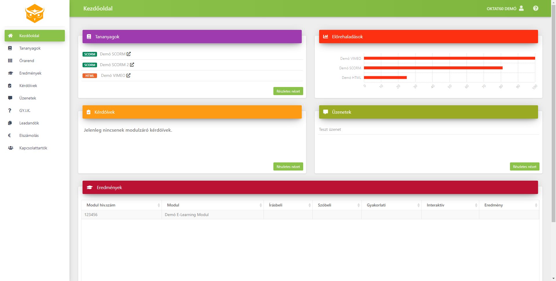 Online, modulos felépítésű ügyviteli megoldásunkkal nemcsak a napi munkafolyamatok gyorsíthatók fel és tehetők szervezettebbé a felnőttképzési piacon tevékenykedő vállalkozásoknál, hanem könnyű bővíthetőségével nagyobb szabású tervek esetén is megfelelő alapot biztosíthat.