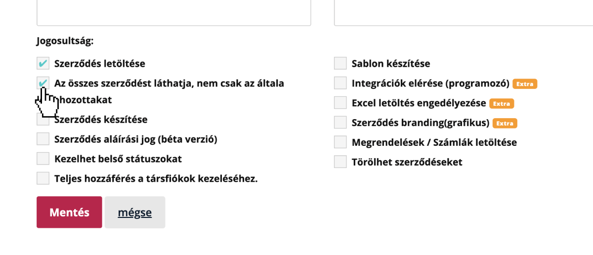Ez a jogosultság hozzáférést biztosít minden rendszerben tárolt szerződés megtekintéséhez, függetlenül attól, ki indította vagy töltötte fel azokat.