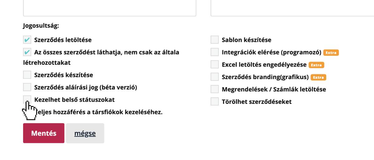 Ez a menüpont meg sem jelenik olyan társfióknak, aki nem kapott ilyen hozzáférést.