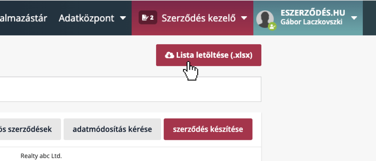 A Lista letöltése (.xlsx) gombbal pillanatok alatt exportálhatja az aktuális partnerlistát Excel-formátumban. Ezáltal könnyedén mozgathat adatokat, részletes kimutatásokat készíthet és testre szabott statisztikákat hozhat létre saját igényei szerint.